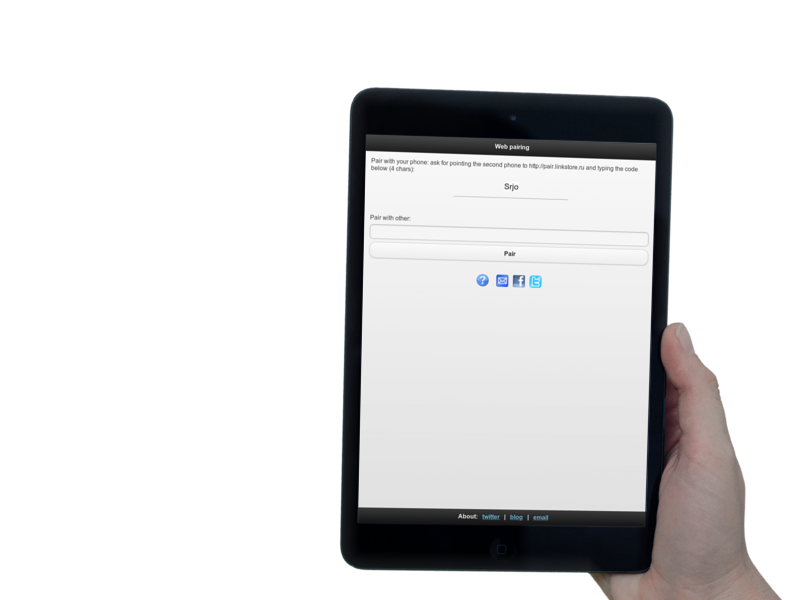 How does it work? Point two browsers (two phones, for example) to the same URL: http://pair.linkstore.ru
